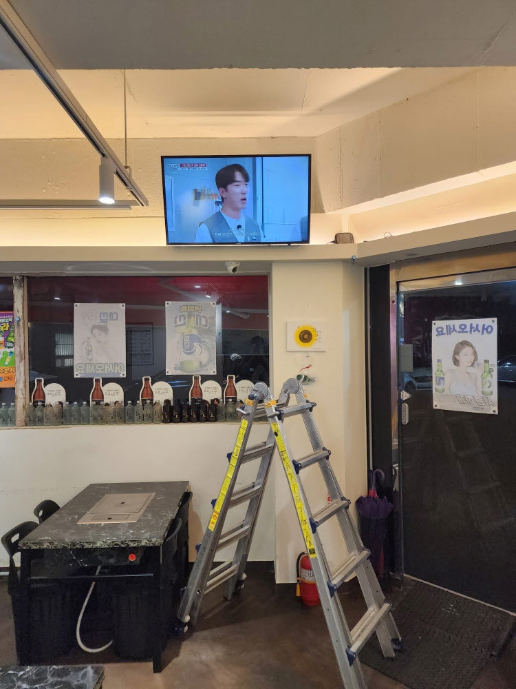김해천장형티비설치 신문동 55인치 가게 음식점 카페 양산벽걸이티비설치 음식점 43인치티비철거후 브라켓재사용 50인치티비설치 작업사진